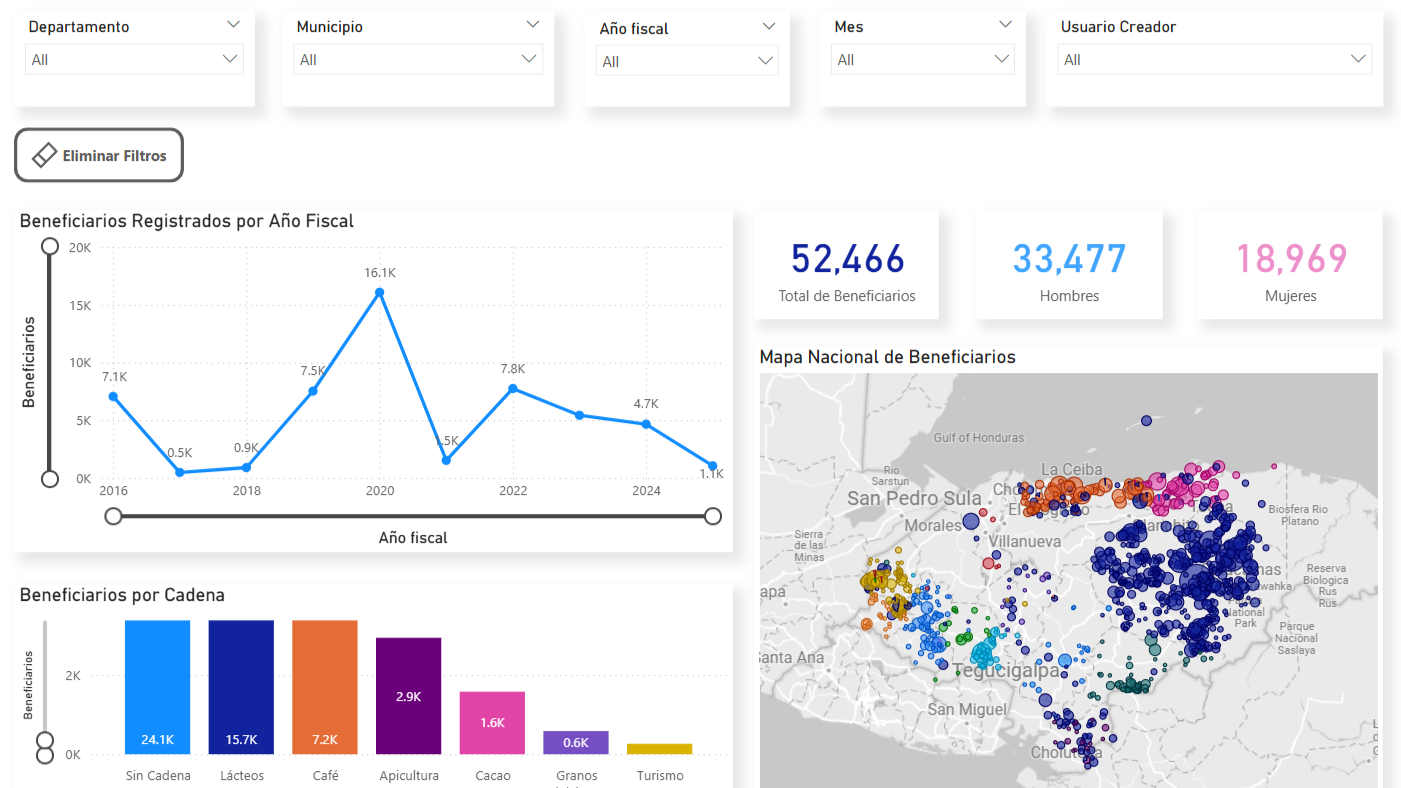 Dashboard created to analyze beneficiary distribution and demographic data.