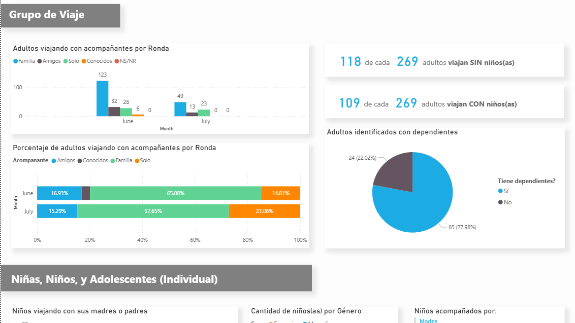 Dashboard created to analyze travel group in transit data for child protection sector.